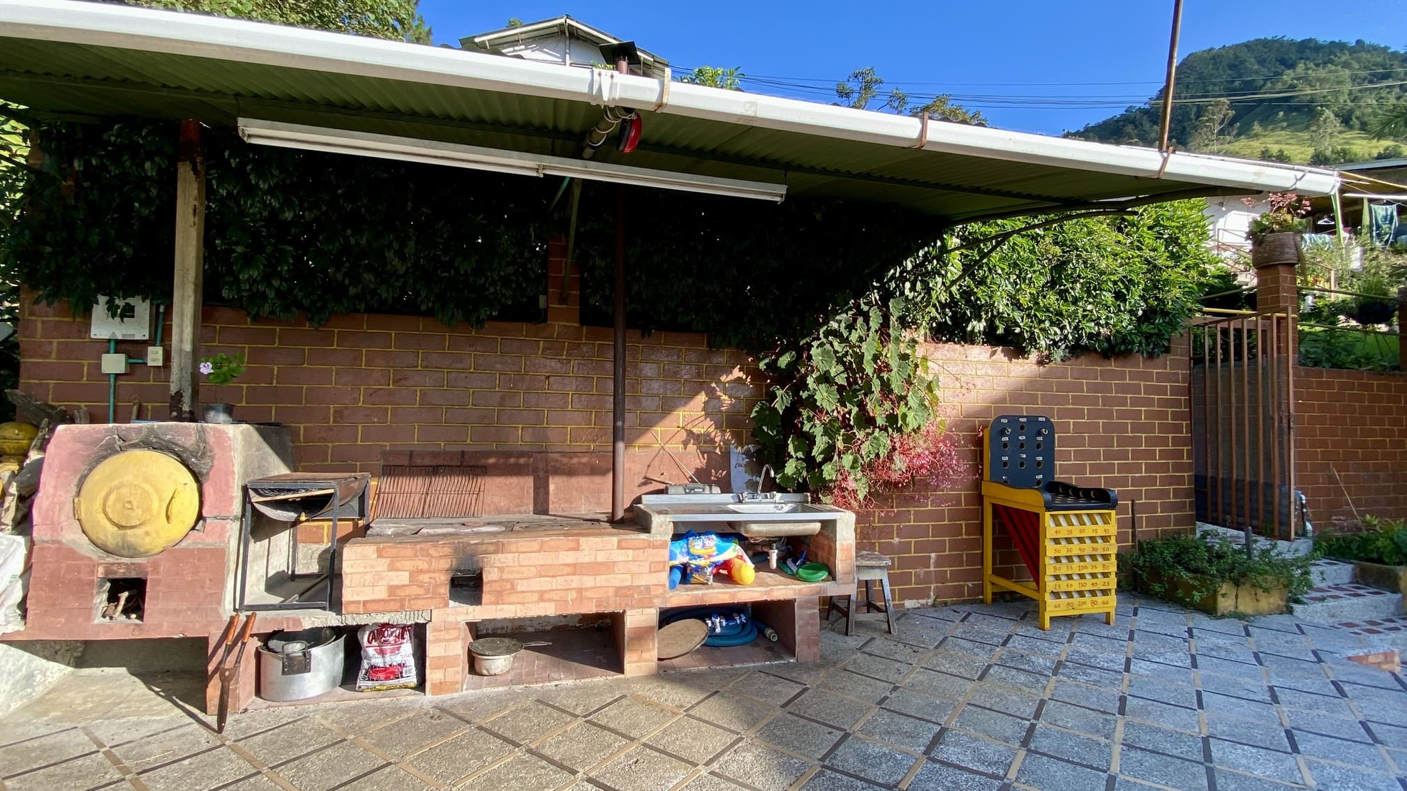 Hay disponible lavaplatos, horno de barro, fogón de leña, mesas y sillas rimax.