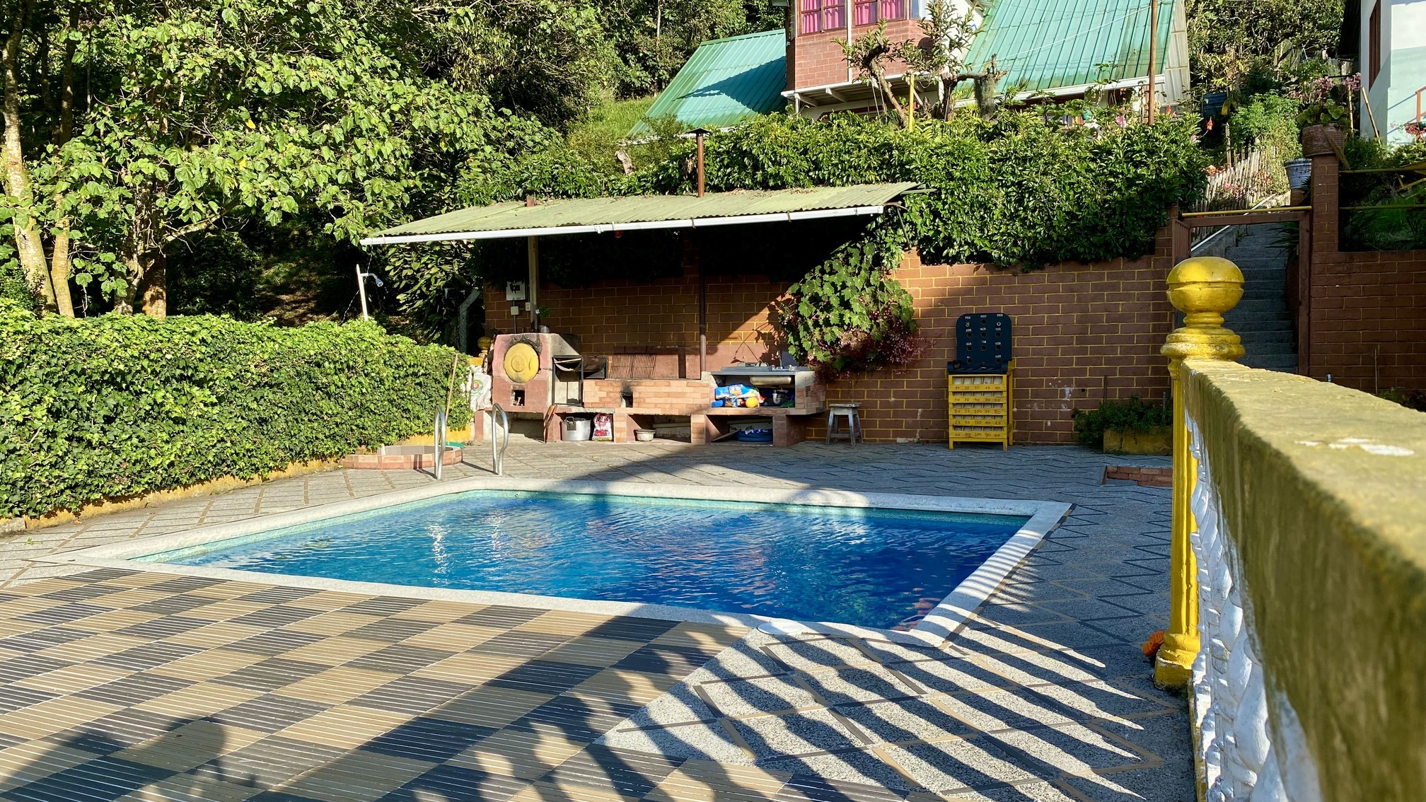 Junto a la piscina hay un horno de barro y fogón de leña para hacer asados o preparar la comida al estilo tradicional.